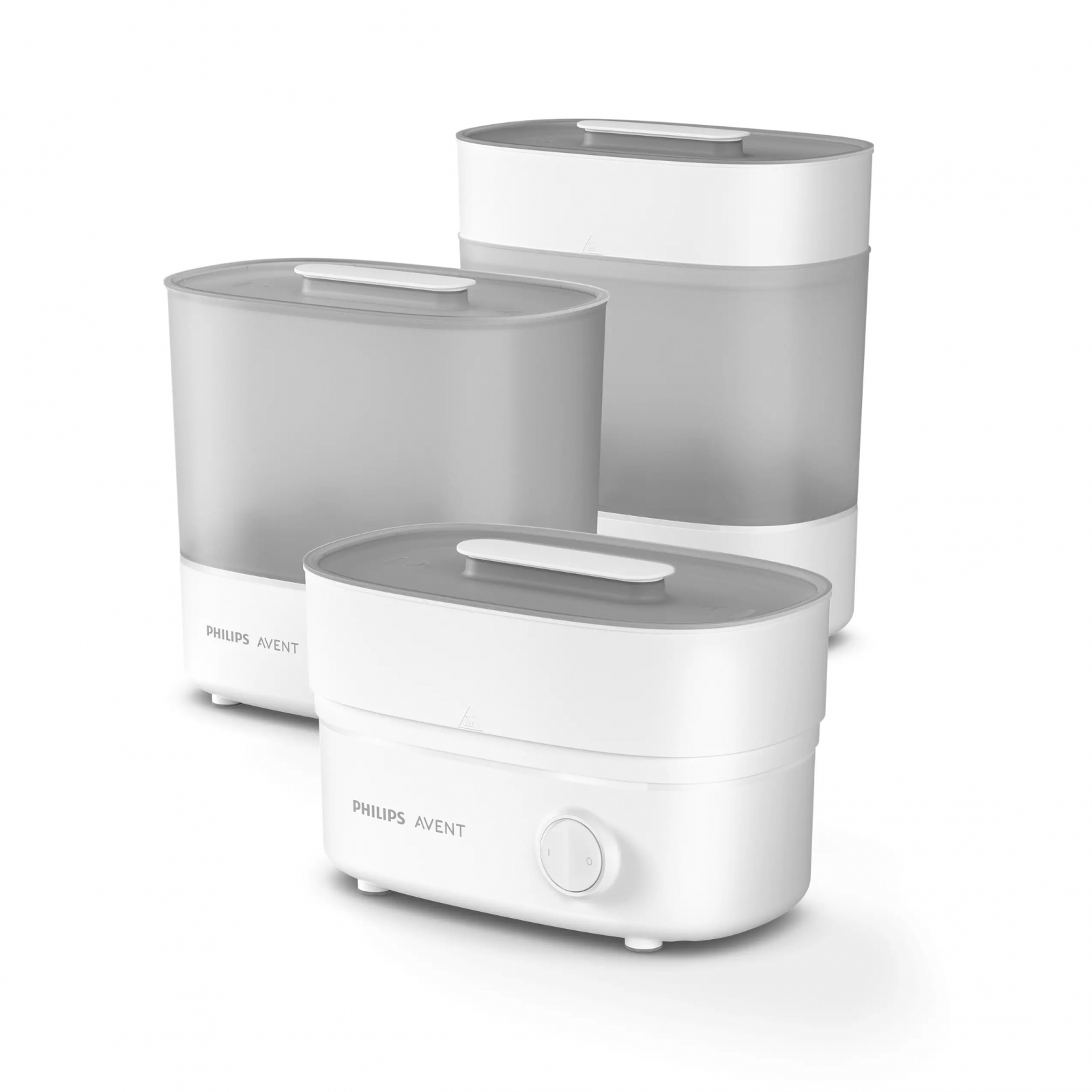 · In acelasi timp, interiorul este spatios si pot fi sterilizate pana la sase biberoane de 330ml/11 oz Philips Avent, dar si alte articole esentiale, de la tetine si suzete pana la o pompa de san manuala.